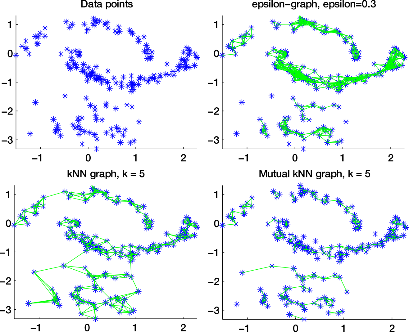 - Similarity graphs describe relationships between data points