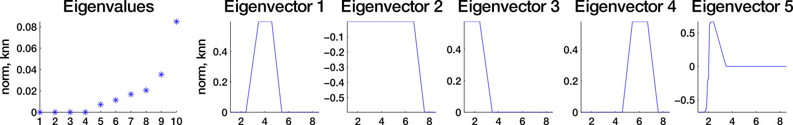 - The smallest eigenvalue of L is 0, with the corresponding eigenvector 1