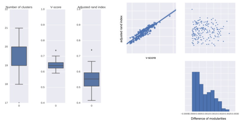 - Louvain algorithm: heuristic to find communities in large data ! reproductibility !