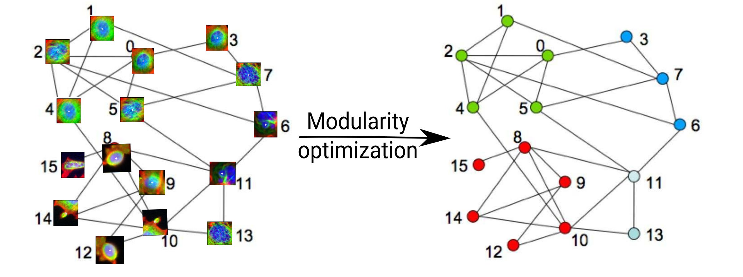 Retrieving cell categories with graph clustering