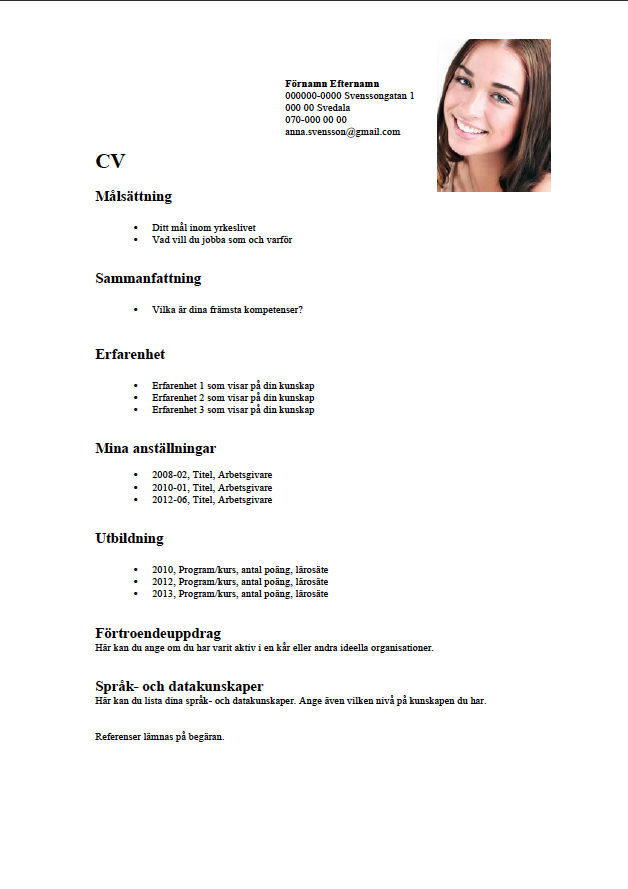 Glöm inte att lista kunskaper och erfarenheter som du fått utanför skola eller arbetsliv