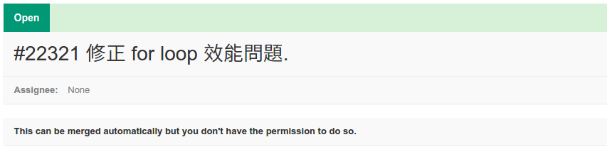 在本例子當中,若遠端修正的內容與本地端 branch 修正的內容剛好改到同個檔案同一行,則發送的 Merge Request 將會被 GitLab 標示成不能 Auto Merge。