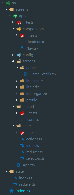 Each screen will define its state shape