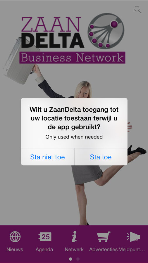 #3. Sta toe dat Zaandelta toegang heeft tot uw locatie. Wordt alleen gebruikt indien nodig. Deze functie is onderdeel van de agenda waarbij bijvoorbeeld de reisstijd kan worden verkregen in een routebeschrijving vanaf jouw locatie naar het Event