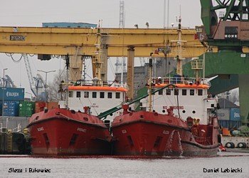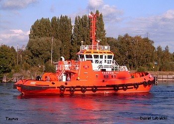 -statek wodny z silnikami napędowymi dużej mocy; przeznaczony do holowania barek, statków oraz do pomocy przy manewrowaniu dużymi statkami w porcie.