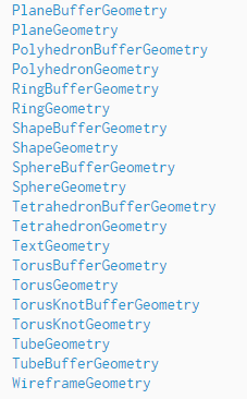 var box = new THREE.Mesh(geometry, material);e. Built in geometries