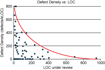 Beyond 200 LOC the review effectiveness drop significantly, more than 400 it's almost pointless.