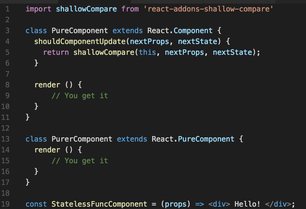 - Stateless (functional) components are not any faster than the pure Stateful class (Right Now)