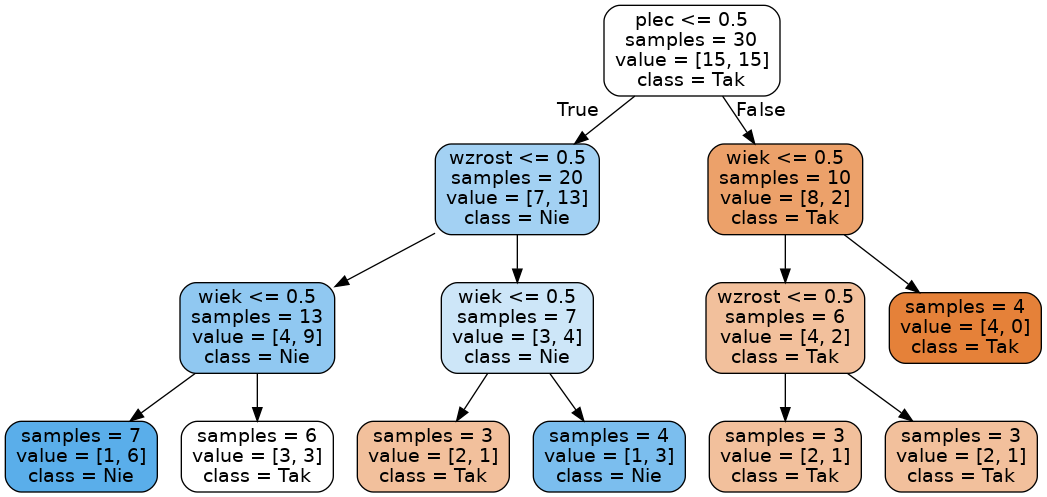 - Węzeł decyzyjny - węzeł, który się dzieli na pod-węzły