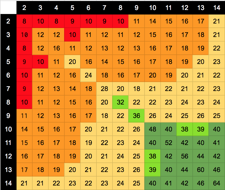 +8 if the hand is suited