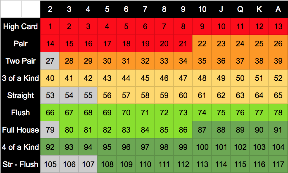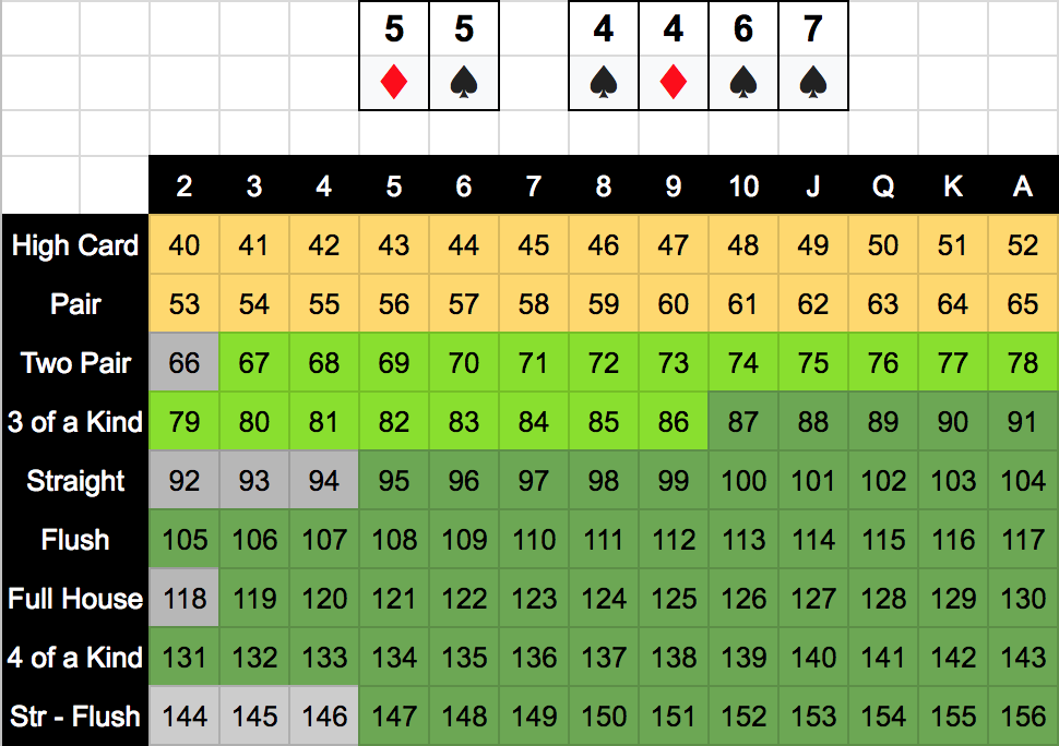 +7 if one card in hand is in the best 5 cards