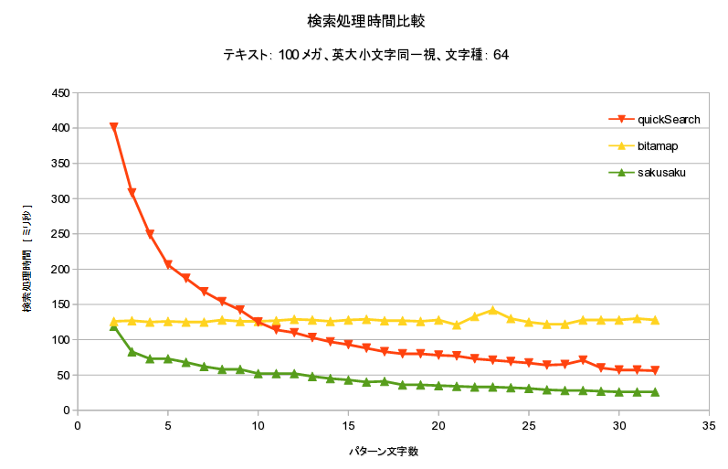 - 英大小文字区別、同一視の両方において、ほぼ最速