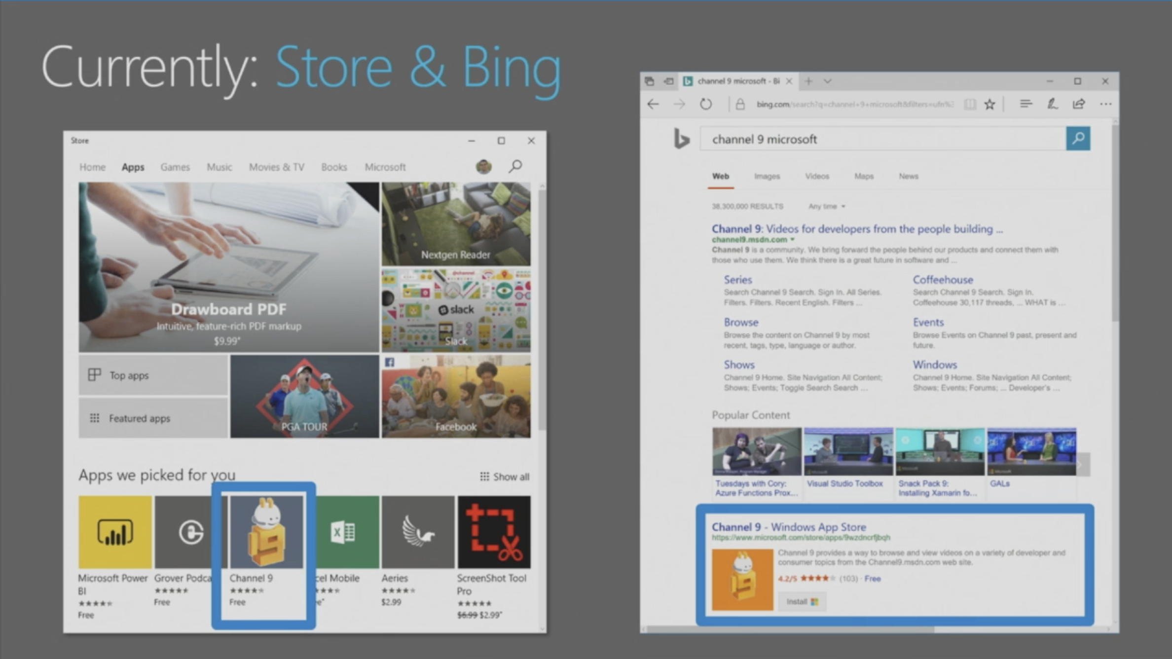 Microsoft just announced first-class support for PWAs in Bing and Windows 10. The search engine will automatically index PWAs and add them to the Windows Store. Users won't see any distinction between these and native Windows applications.