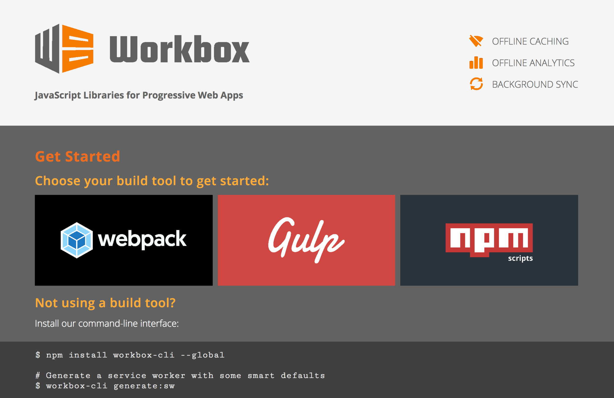 There is also a new Google library called Workbox, which integrates with most build tools and has built in modules for lots of common PWA patterns