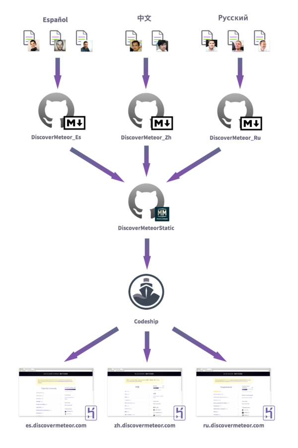 book.discovermeteor.com è un'applicazione Meteor, ma non le traduzioni che sono invece siti statici.
