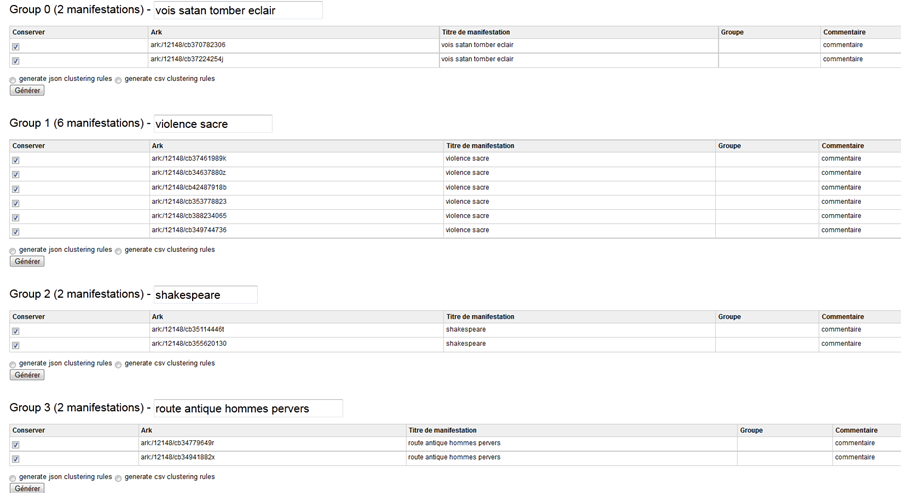 Formes retenue et rejetées du titre