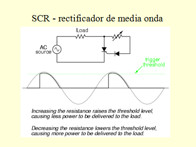 Un SCR (or Semiconductor Controlled Rectifier) es un elemento semicondcutor controlado por corriente.