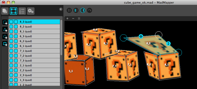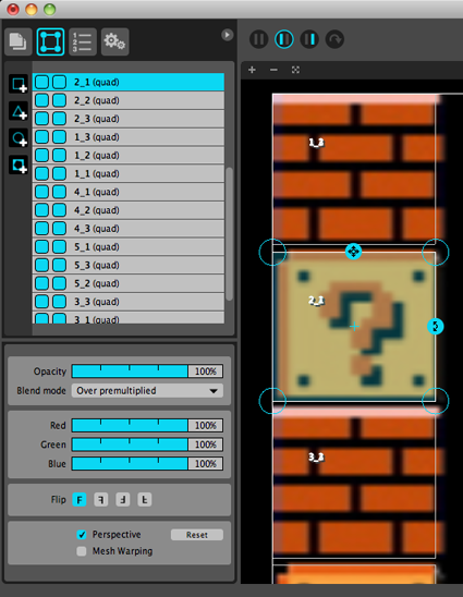 軟體工具能夠簡易地匯入圖像素材或即時影像,並且增加截取影像矩陣的視窗平面方式進行Mapping作業編輯。