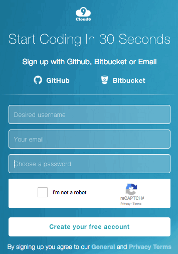 Sign up for Cloud9 (http://c9.io)