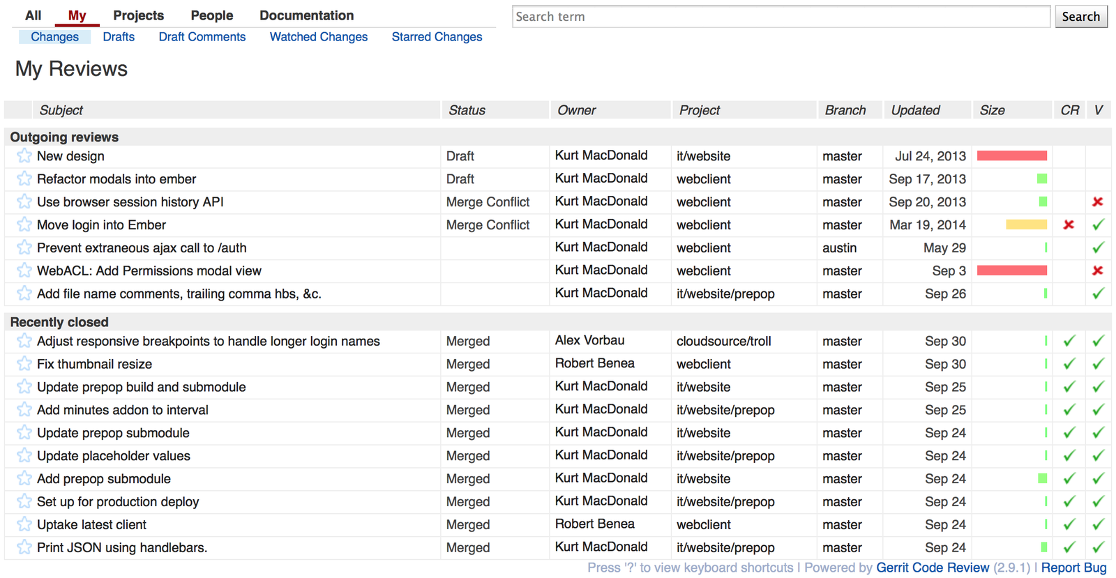 A patch must pass the verifier before it can be merged. Jenkins, our CI server, automatically runs the test scripts for each project when a new patch set is pushed.
