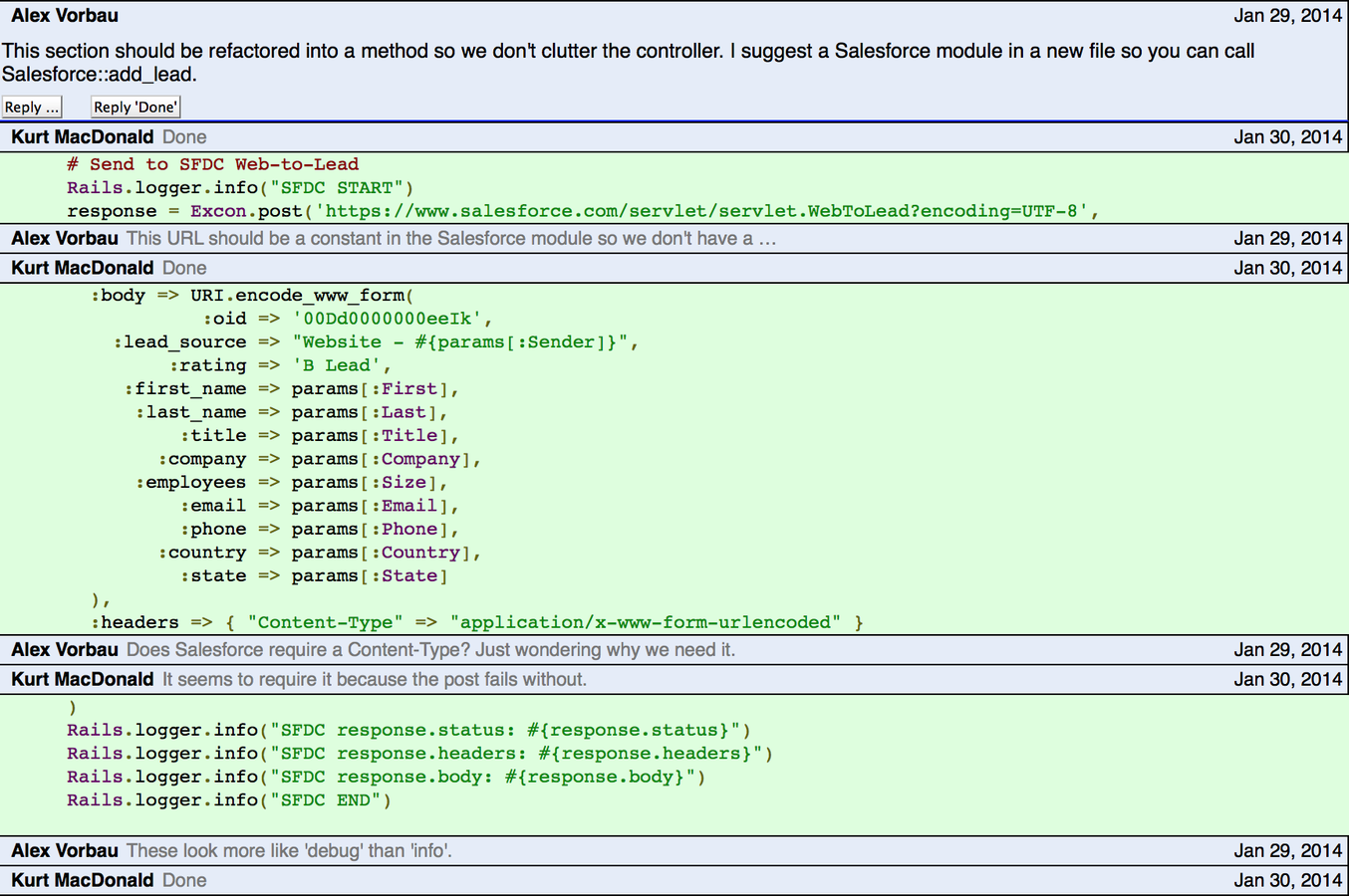 This makes the history clear and it can dramatically speed up response times from reviewers.