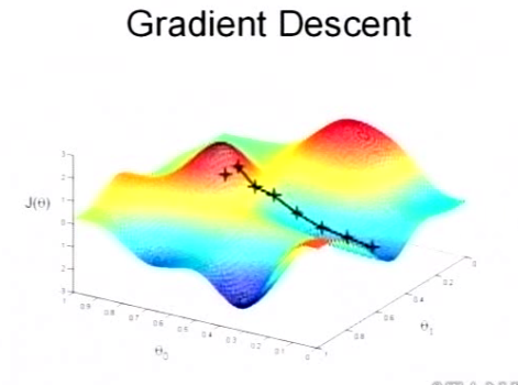 We keep change parameters to reduce cost function. Until we end up at minimum. So we can find the best line to our data.
