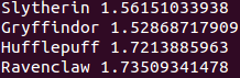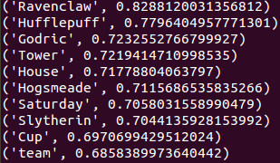 print(model.most_similar('Gryffindor', topn=10)print(model.most_similar('brave', topn=10)