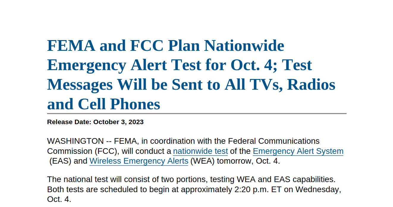 There will be a FEMA emergency test starting at 2:20 PM ET