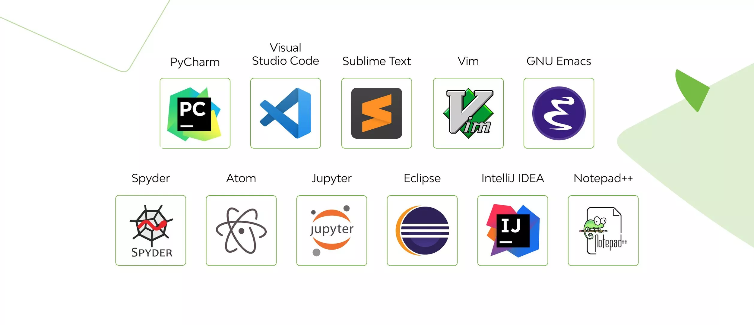 Para programar se pueden utilizar varios tipos de programas desde simples editores de textos (Ej: Notepad) hasta entornos de desarrollos integrados llamados IDE (Ej: Python IDE o PyCharm)