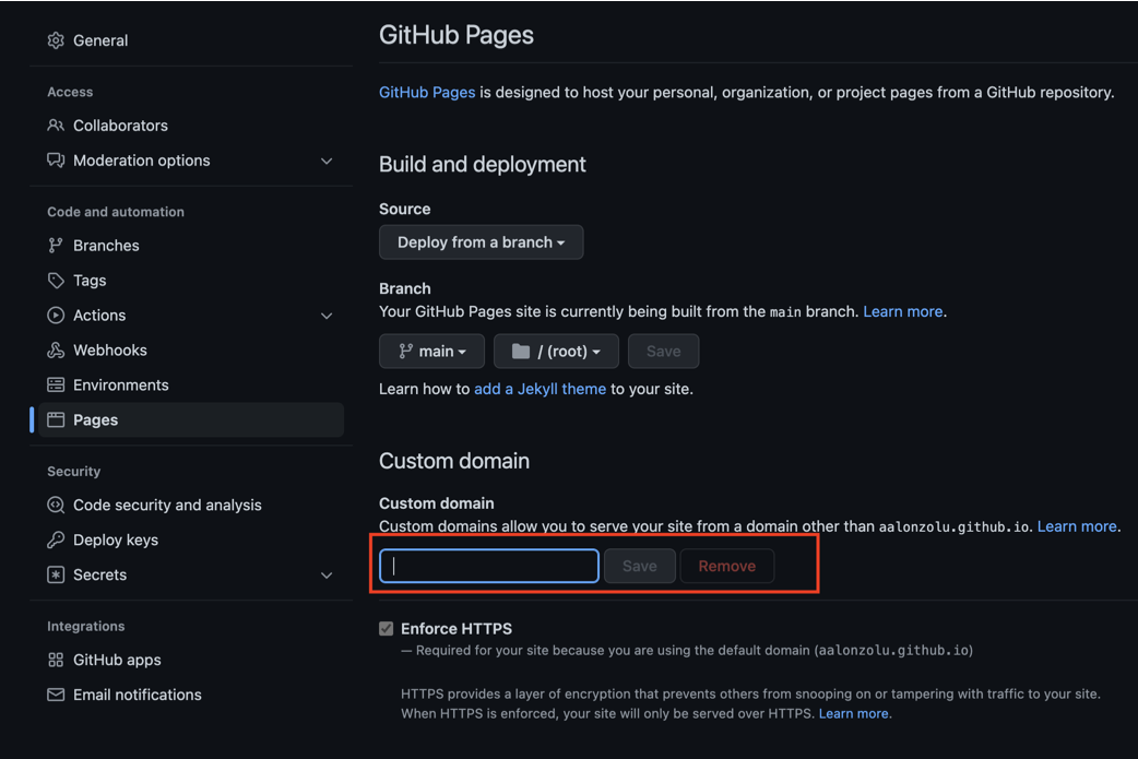 Apuntar dominio al CNAME <username>.github.io -