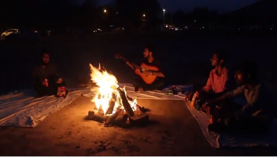While researching we went through a lot of Acoustic-Pop music videos,and singing by the bonfire was seen in a lot of music videos,inspired by that we also added a bonfire scene in our music video.