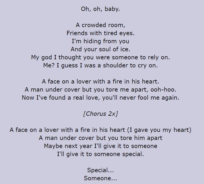 - "Love you like a love song" by Selena Gomez is an example as different costumes and props are showed in the different scenes of the video. And there are both old and new times shown, along with different races, ethnicitys and cultures are represented in the music video.