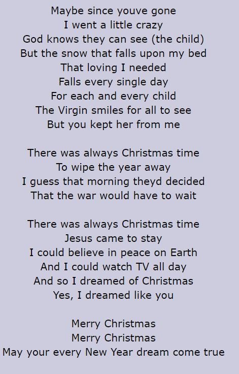 - George Michael's "Last Christmas" and "December Song( I dreamed of christmas)" is a good example,last christmas talks about how his lover left him on christmas day and in the december song he talks about he felt when his lover left him and he wonders how would his ex-partner be doing now.