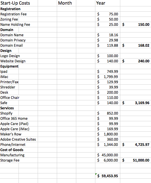 - Start-up cost: $80,000 utilizing a business loan