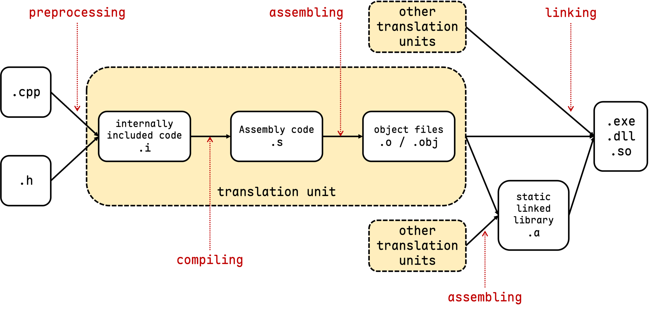 - 我希望多說一點傳統 C 語言當中,不同的程式和函式庫是如何結合、編譯的