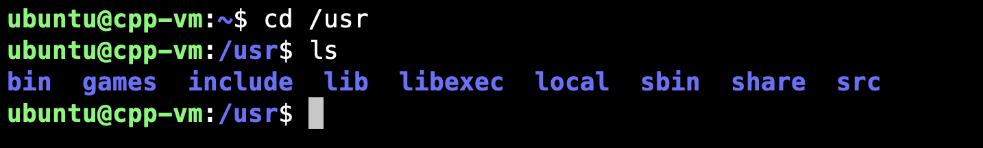 bin:一堆執行檔 lib:一堆函式庫include:一堆標頭檔local:和 /usr 一樣的結構,但是是給使用者手動放東西的