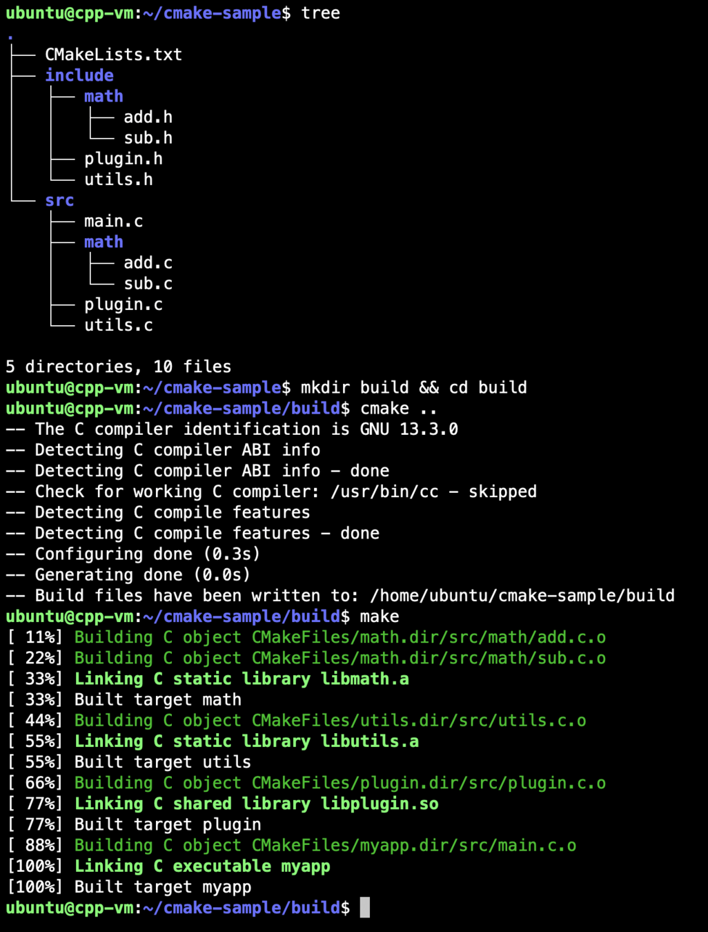 使用 CMake 建置專案當中要包含至少一個靜態函式庫、一個動態函式庫、一個執行檔-