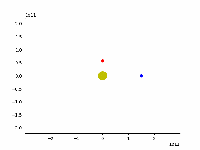 t = np.linspace(0, years*seconds_in_year, frames)# Определяем функцию для системы диф. уравнений