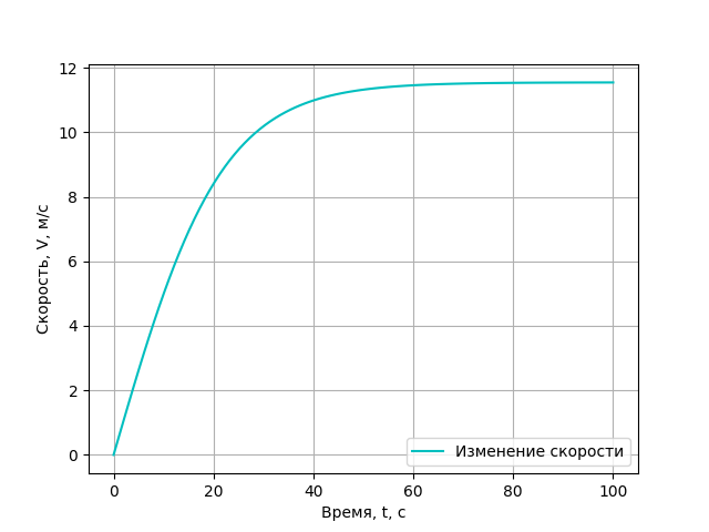 plt.plot(t, solve[:,0], color='c', label='Изменение скорости')