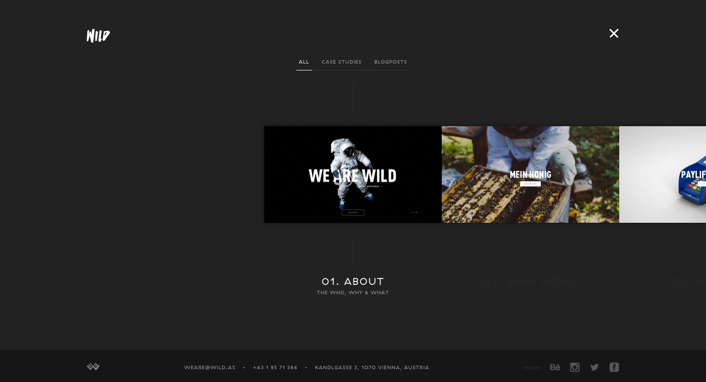 scrolling image materialization animation covers up the important categories of work that the agency does