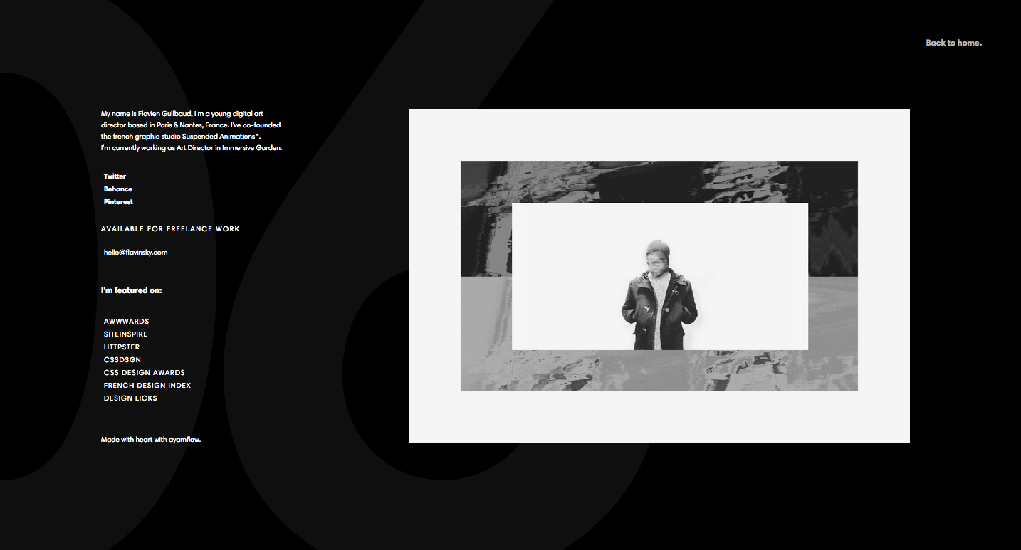 Arrow link undergoes a fast 'bounce' animation effect from the bottom left corner of the page