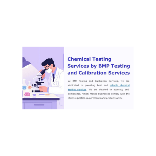 Find quality and <a href="https://bmptesting.com/page/chemical-testing">reliable Chemical Testing Services</a> through BMP Testing and Calibration Services, your reliable and accurate partner. Our state-of-the-art labs mainly focuses on the raw materials, finished products and industrial samples analysis to ensure compliance with international safety and regulatory standards. Our professional staff guarantees accuracy in each test, whether it is composition analysis and contamination detection or quality assurance. We use the best technology and professional skills to create outcomes that enable business in manufacturing, pharmaceuticals, and construction to excel at BMP. Select BMP to rely on Chemical Testing Services, which are reliable, safe, and assure customers of good performance.