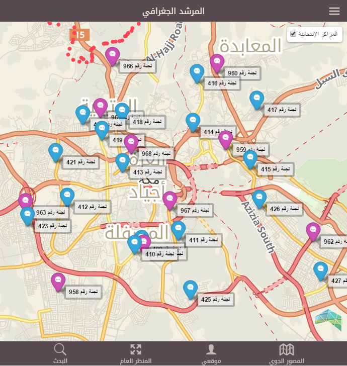 - تمكين المواطنين من رسم مسارات من مواقعهم إلى الدوائر الانتخابية.