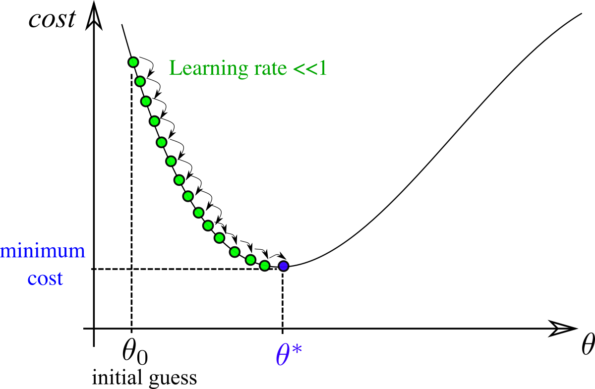 suppose that f is μ-strongly convex and L-smooth. The gradient descent algorithm with η < 1/L converge to θ* with
