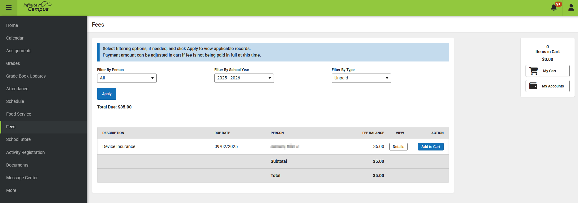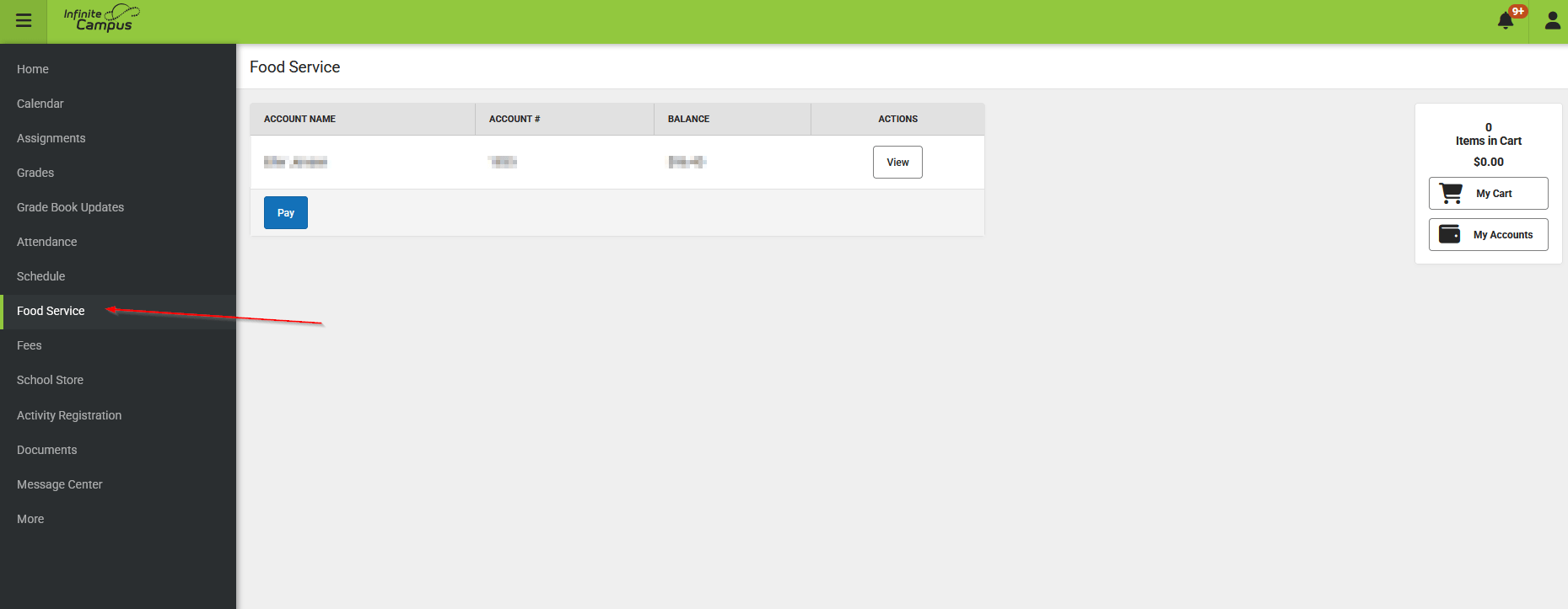 Add some money to your students lunch balance. You may need to setup a credit card. Use of credit cards are subject to fees.
