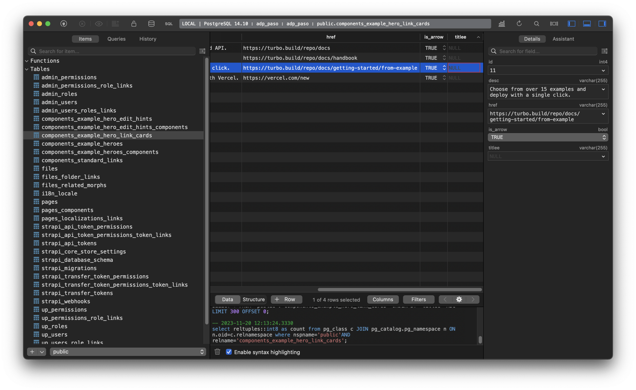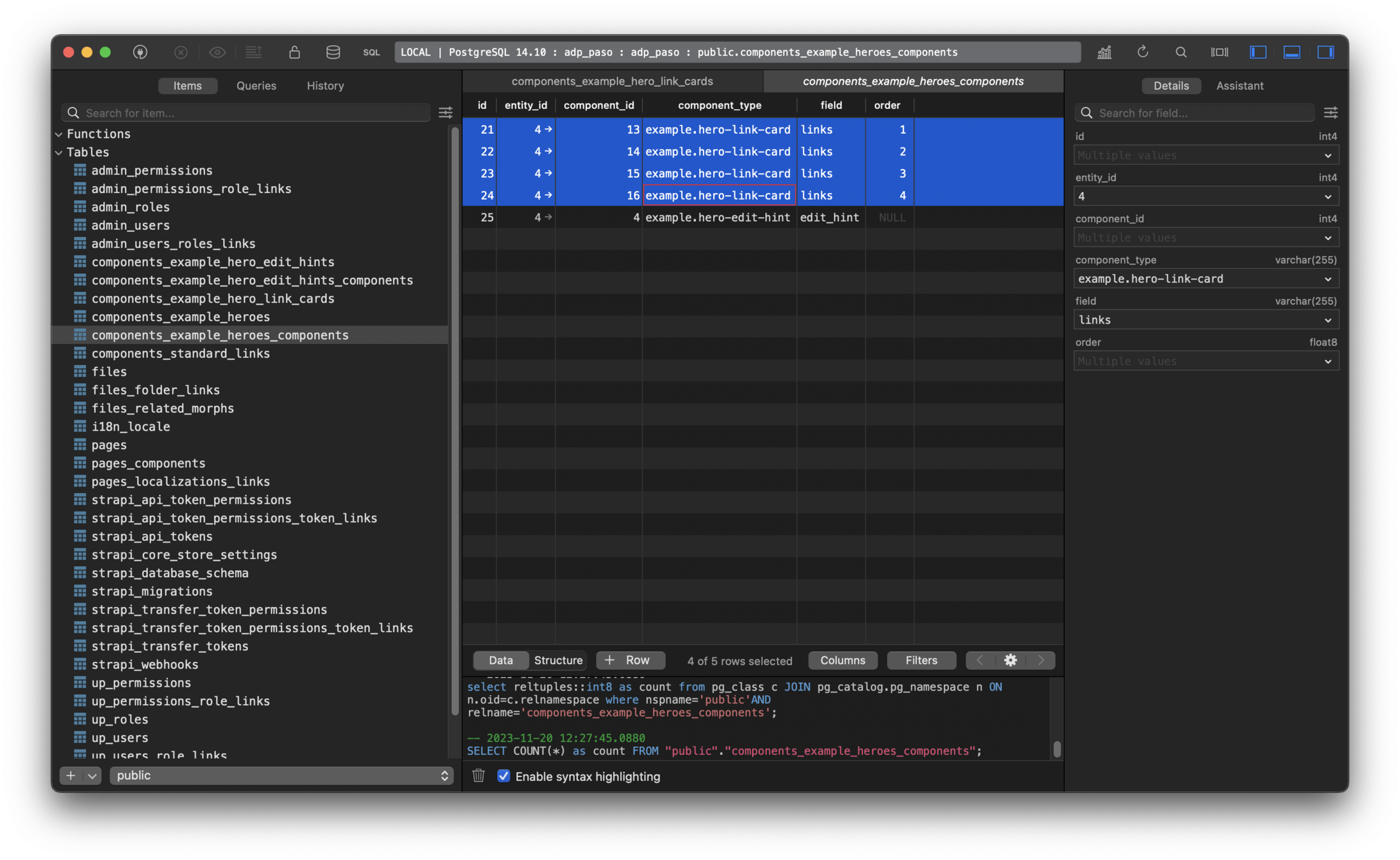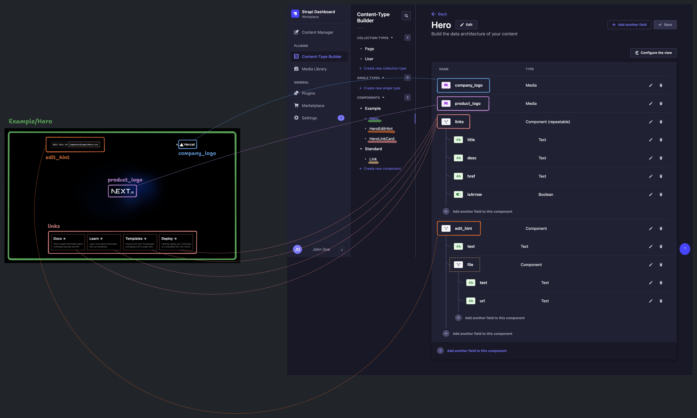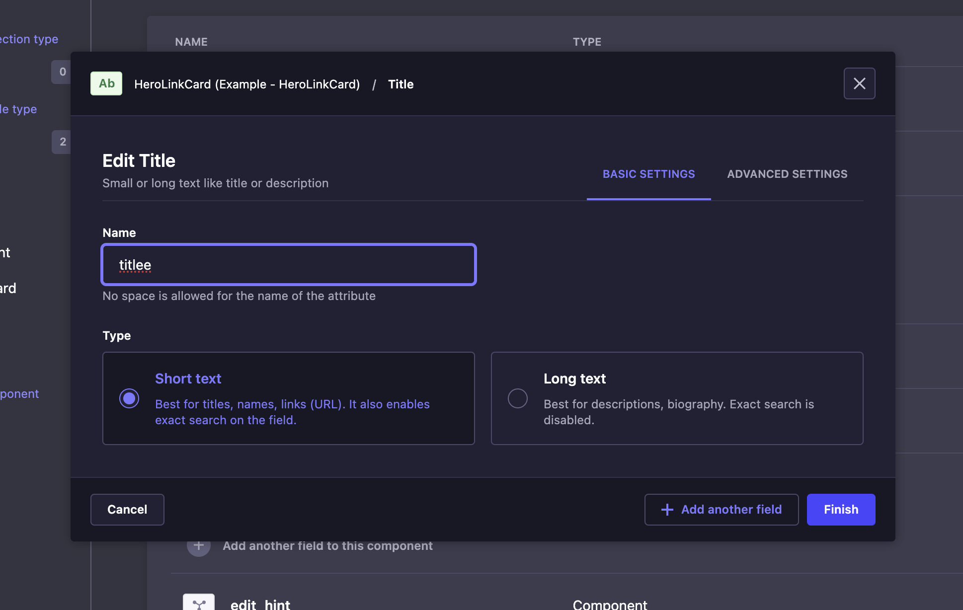 Error 0: Cannot query field "title" on type "ComponentExampleHeroLinkCard". Did you mean "titlee"?
