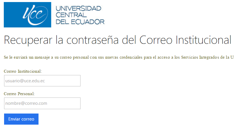 El cambio de claves o recuperación de contraseñas de acceder a lo sistemas Universitarios, el usuario debe realizarlo desde el correo institucional: