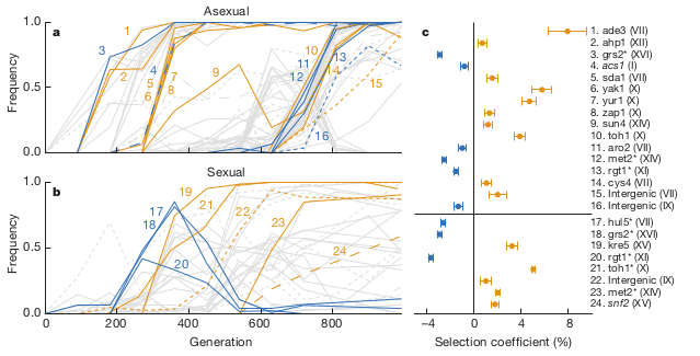 in asexual reproduction, mutations are correlated and may become extinct after temporarily increasing in frequency