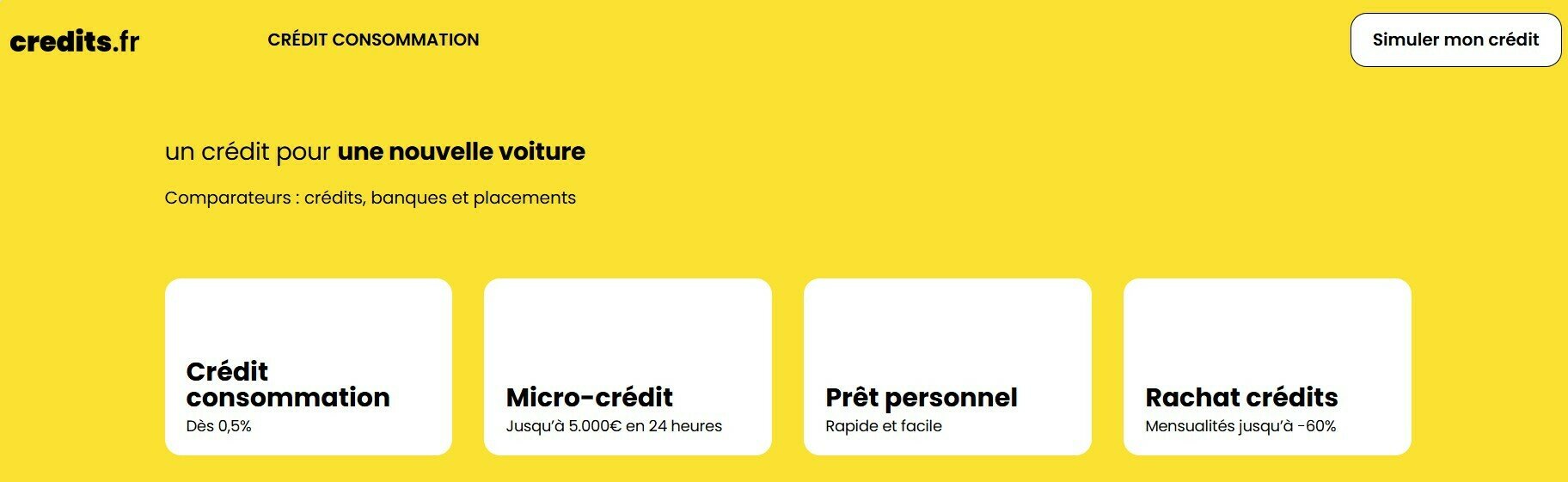 La plateforme credits.fr offre une gamme complète de solutions de crédit adaptées à divers besoins. Que ce soit pour un prêt personnel, un crédit renouvelable ou un micro-crédit, les utilisateurs peuvent comparer les offres disponibles et choisir celle qui correspond le mieux à leur situation. Par exemple, les mini-prêts en ligne sur credits.fr permettent d'obtenir jusqu'à 2 500€ en 24h sur votre compte bancaire.