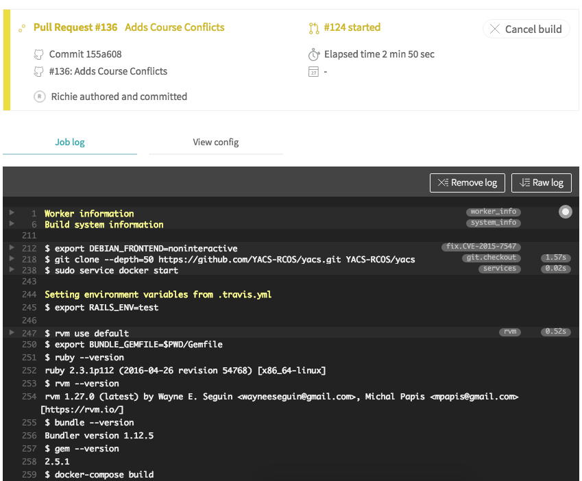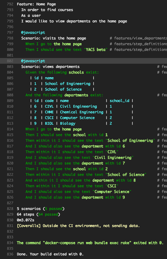 - psql -c 'create database "yacs-test";' -U postgresIn your project...